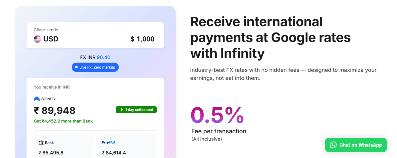 At its core, Infinity is a fintech service that gives Indian businesses virtual bank details in multiple currencies so overseas clients can pay as if they were transferring locally. The platform positions itself around transparent fees, live FX conversion and faster settlements compared with traditional correspondent bank routes.