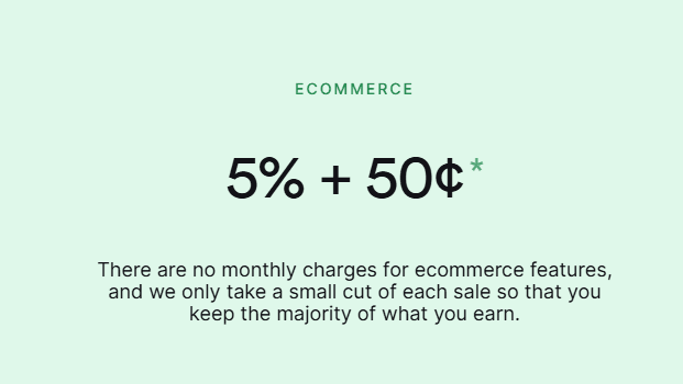 For higher-volume sellers, custom (volume) plans are available. Additional add-ons exist but at a base level, 5%+$0.50 is your only fee for core ecommerce.