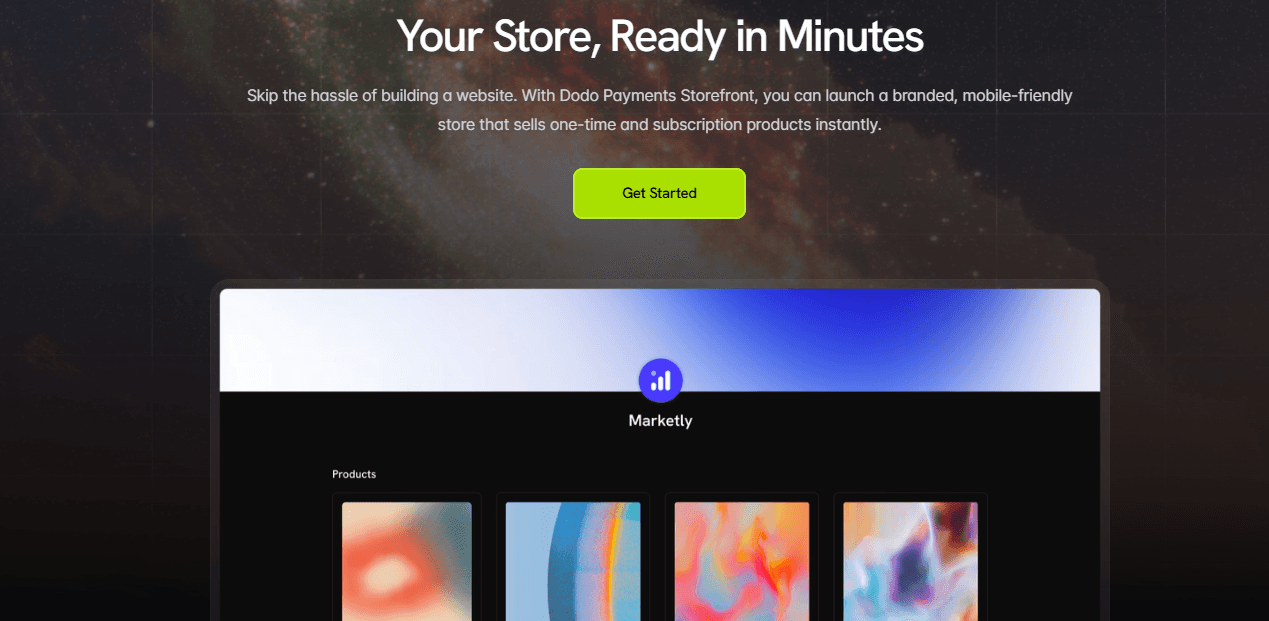 Hosted Storefront: A ready-to-use, customizable storefront that lets you sell products, subscriptions, or usage-based plans globally.